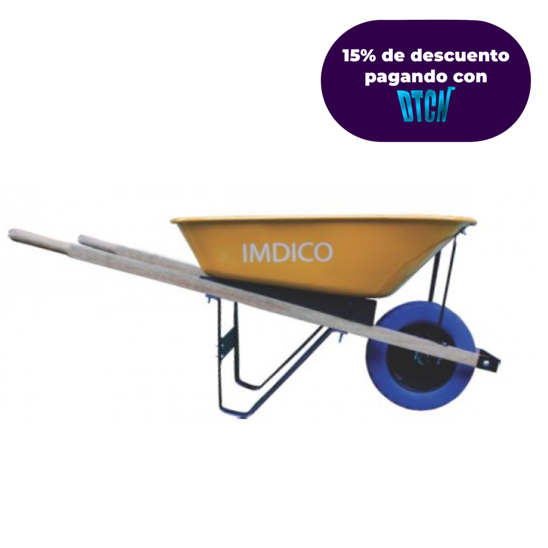 Carretilla con tolva metálica, rueda anti pinchazo, bastidores cuadrados en madera y chasis metálico de uso industrial. Usos: industria, jardinería, agricultura y construcción.