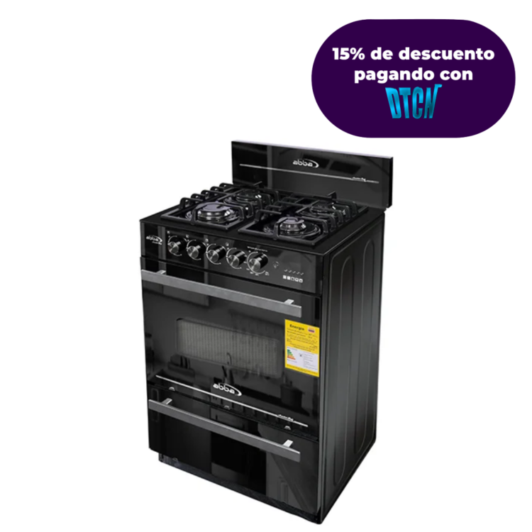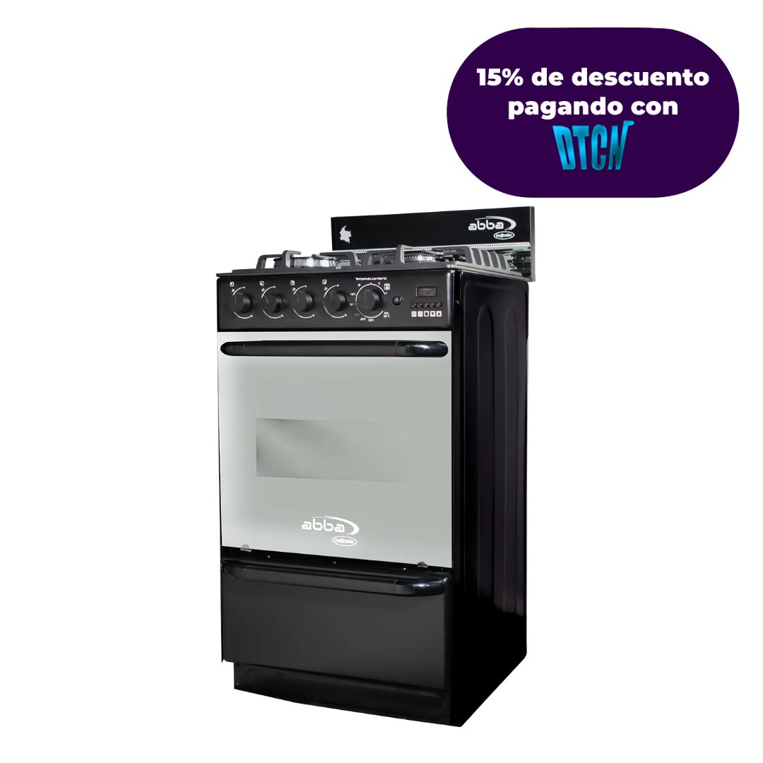 Estufa Master chef Abba 51 centímetros Gas Natural o propano, con TIMER DISPLAY, puertas y mesa en  vidrio de seguridad, la puerta del horno en vidrio espejo aporta visibilidad al interior  que te permite monitorear tus platillos mientras se cocinan. Dos parrillas superiores dobles en hierro fundido fabricadas con materiales resistentes y fáciles de limpiar con 4 quemadores de alto rendimiento ultra rápidos, para cocinar con rapidez y precisión. Encendido automático (en quemadores y horno), hornos con aislamiento térmico lo cual evita perdidas de calor al interior del horno, generando menor consumo de energía, espacioso y eficiente, permite hornear con resultados profesionales, operado por termostato (con protección termoeléctrica), con luz interior (bombillo de 25W), gratinador eléctrico de 1000W a 120 V/60 Hz con sensor térmico que evita el sobrecalentamiento del producto, Calientaplatos asador. Perillas de estufa con diseño ergonómico.