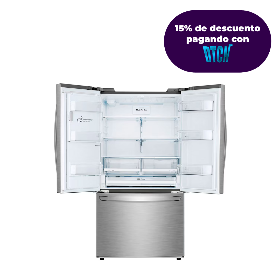 Nevecón LG tipo Europeo de gran capacidad espacios más optimizados para una mejor organización del espacio, mantén tus alimentos y bebidas siempre frescos y con la misma temperatura inclusive desde la puerta con la tecnología DoorCooling, con la tecnología Multi Air Flow la circulación de aire frío a cada esquina del refrigerador es constante asegurando que cada uno de los alimentos se enfríen adecuadamente, Ahorra energía y disfruta 10 años de tranquilidad con Smart Inverter Compressor ¡Compra Ahora!