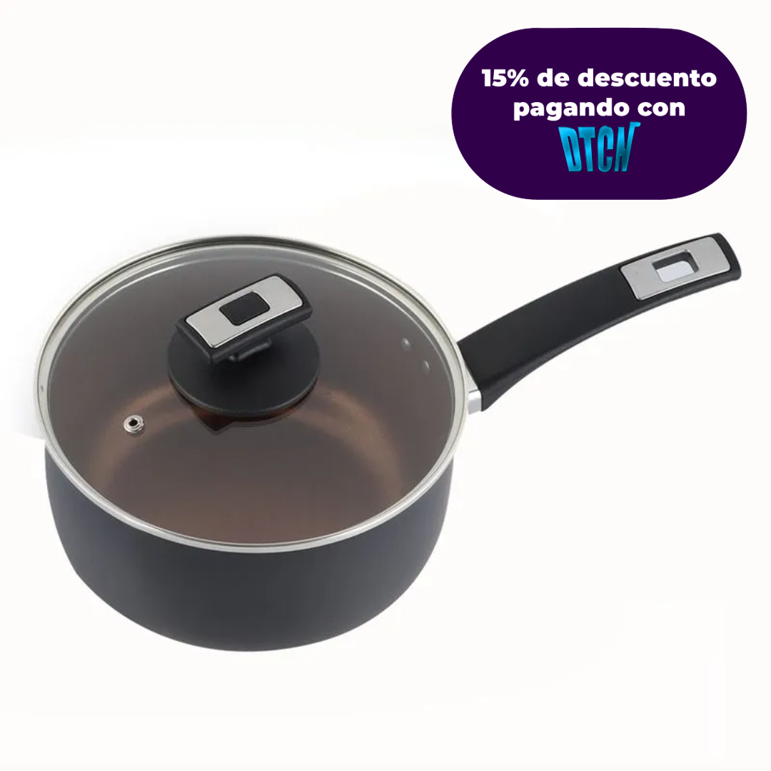 Nuevo perol Niza de 18cm + tapa de vidrio. Te acompañará en tus preparaciones de tu día a día más sencillas. Calienta bebidas o haz el desayuno con el mejor estilo. Diseñada en baquelita con inserto en acabado cromado para una mayor calidad y resistencia.