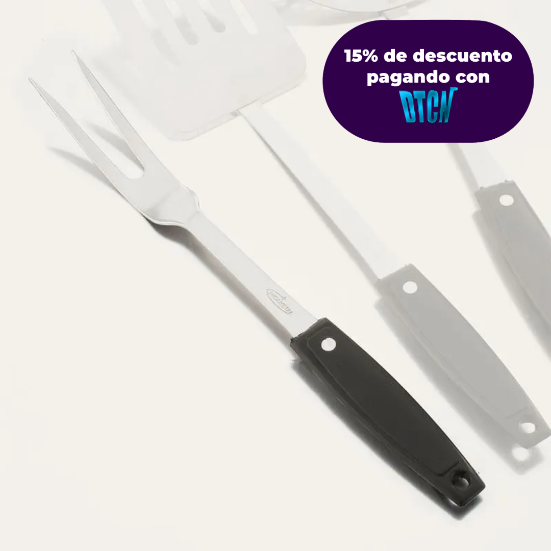 Prepara y sirve tus comidas con el Tenedor 1000 Andina mientras disfrutas de su diseño funcional. Su fabricación en Acero inoxidable lo convierte en una pieza resistente y de calidad. Nuestros utensilios son ideal para simplificar las tareas del hogar, por eso son de fácil manejo con mango en polipropileno, te ayudara a resolver los inconvenientes que se presentan al momento de cocinar y te brindará más confianza y seguridad.